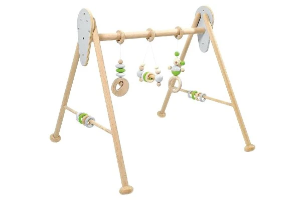Das Babyspielgerät animiert Babys zum Greifen, Schauen, Krabbeln, Aufsitzen, Stehen und zu den ersten Gehversuchen.